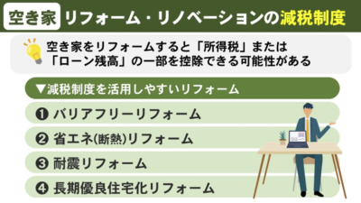 空き家をリフォームまたはリノベーションするメリットや費用、減税制度について解説しました。