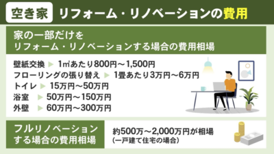 空き家をリフォームまたはリノベーションするとなると、気になるのは「いくらかかるか」ではないでしょうか。