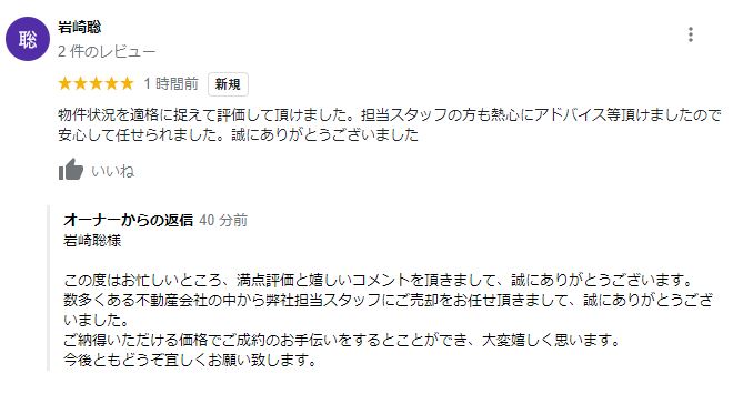 お客様よりグーグルレビューをいただきました!