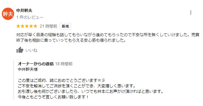 お客様よりグーグルレビューをいただきました!