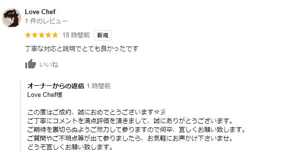 お客様よりグーグルレビューをいただきました!