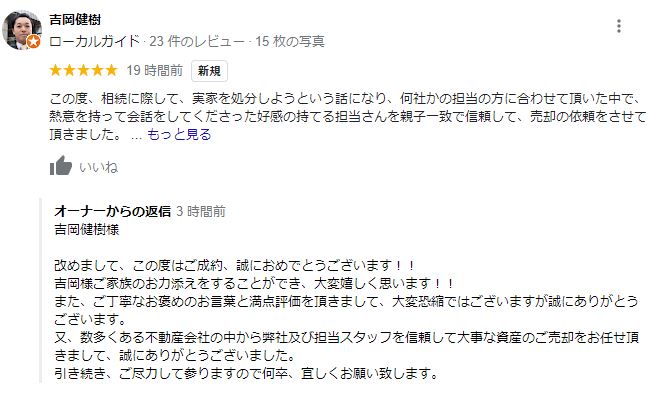 お客様よりグーグルレビューをいただきました!