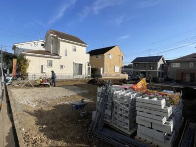 令和5年(2023年)2月完成予定・土地面積117.39㎡・建物面積91.91㎡・木造2階建・4LDK
