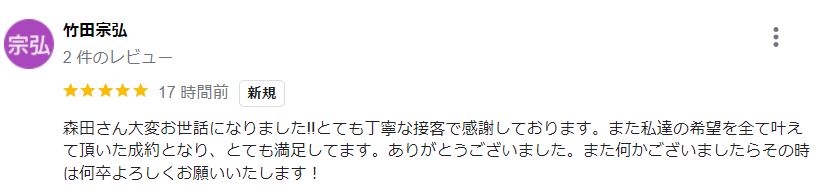 お客様よりグーグルレビューをいただきました!