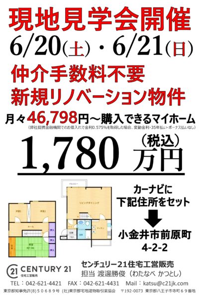 現地へは:カーナビ 小金井市前原町4-2-2 とセット