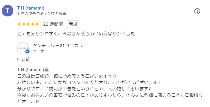 グーグルレビューをいただきました!