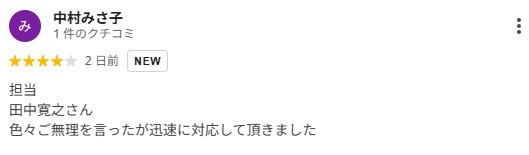 グーグルレビューをいただきました!