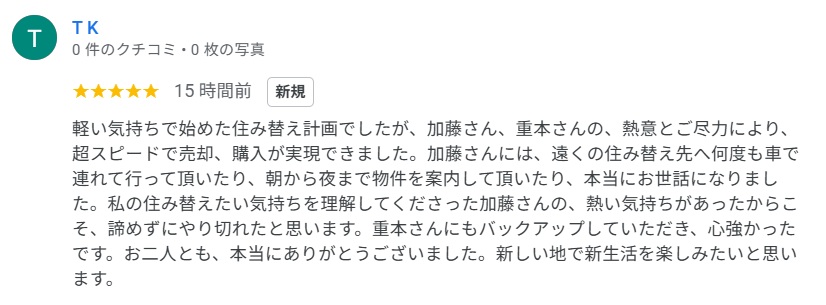 グーグルレビューをいただきました!