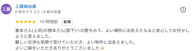 グーグルレビューをいただきました!