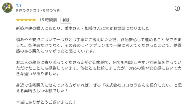 グーグルレビューをいただきました!