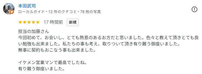 グーグルレビューをいただきました!